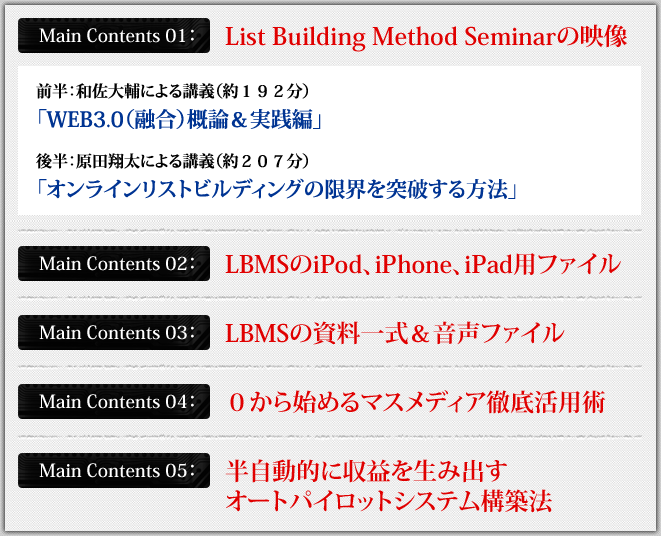合計8つのコンテンツが、リストビルディング大百科には含まれます。